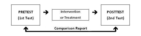 pre-treatment test. Then, the same test is administered again, upon treatment completion, and this is called the posttest.
